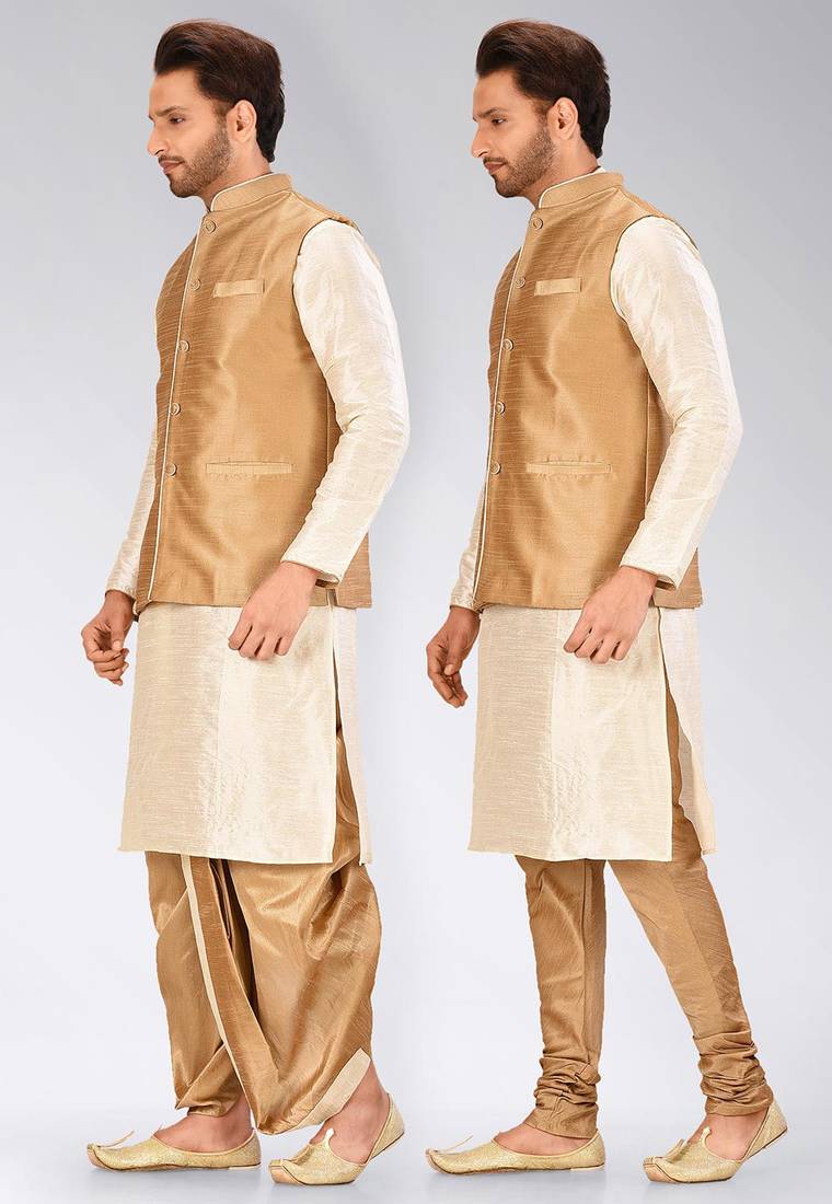 | Product Name | Cream Dupon Art Silk Kurta, Jacket With Matching Dhoti And Churidar | |