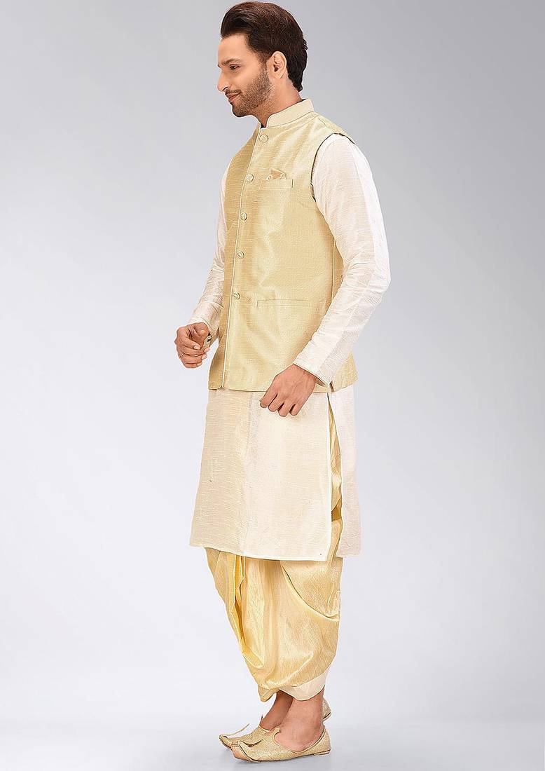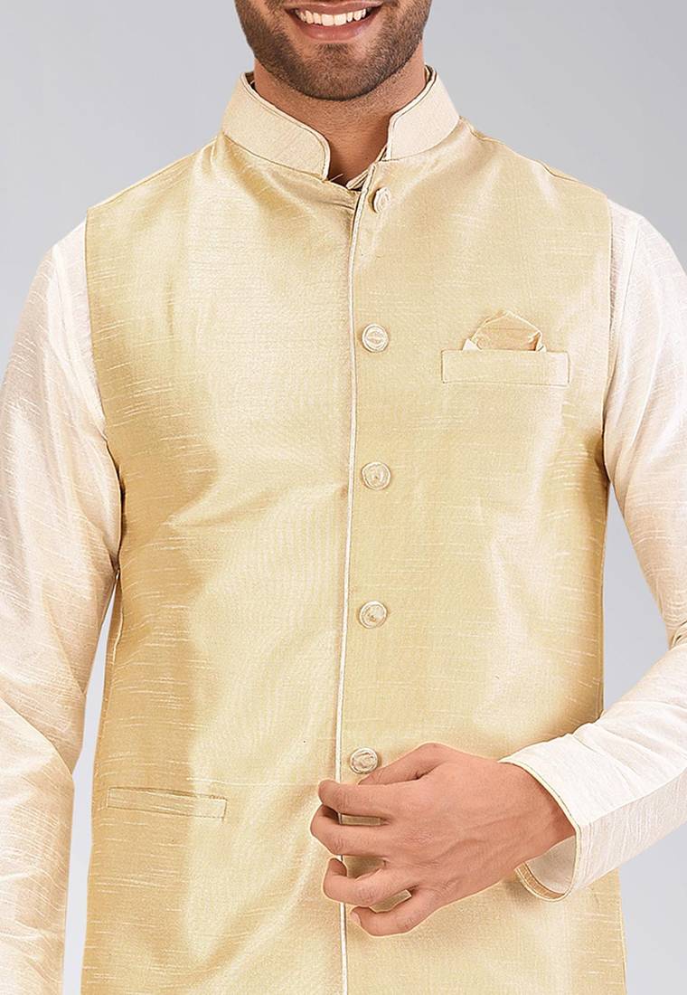 | Product Name | Cream Dupon Art Silk Kurta, Jacket With Matching Dhoti | |