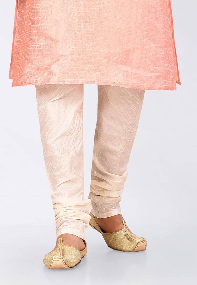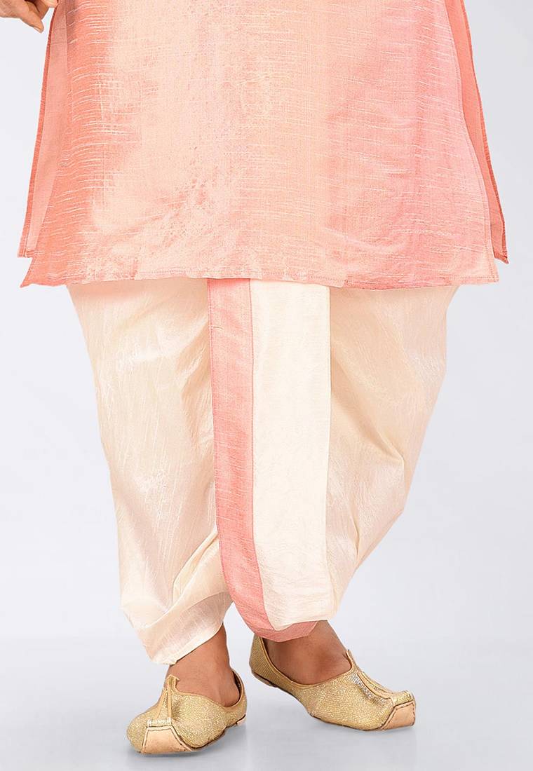 Pink dupon art silk kurta, jacket with matching dhoti and churidar