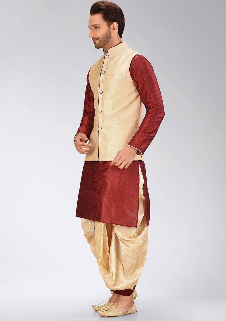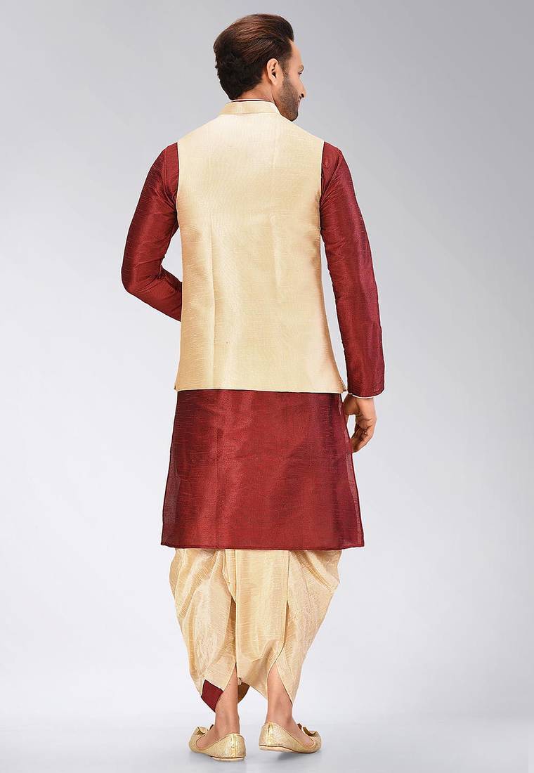 | Product Name | Red Dupon Art Silk Kurta, Jacket With Matching Dhoti | |