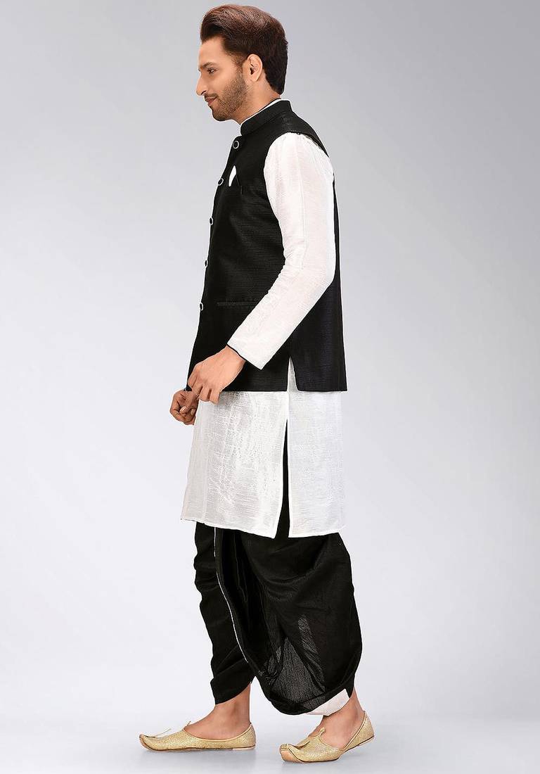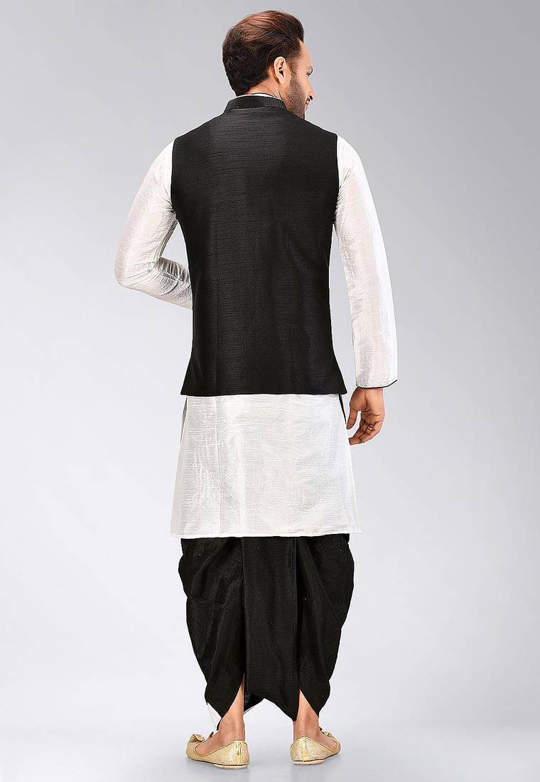| Product Name | White Dupon Art Silk Kurta, Jacket With Matching Dhoti | |