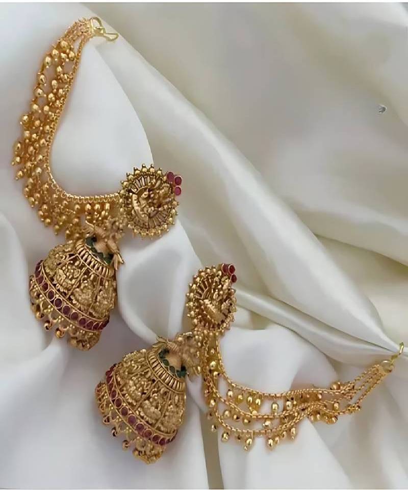 | Product Name | Antique Gold Temple Jhumka Earrings Traditional South Indian Wedding Jewelry Set With Ear Chain | |
