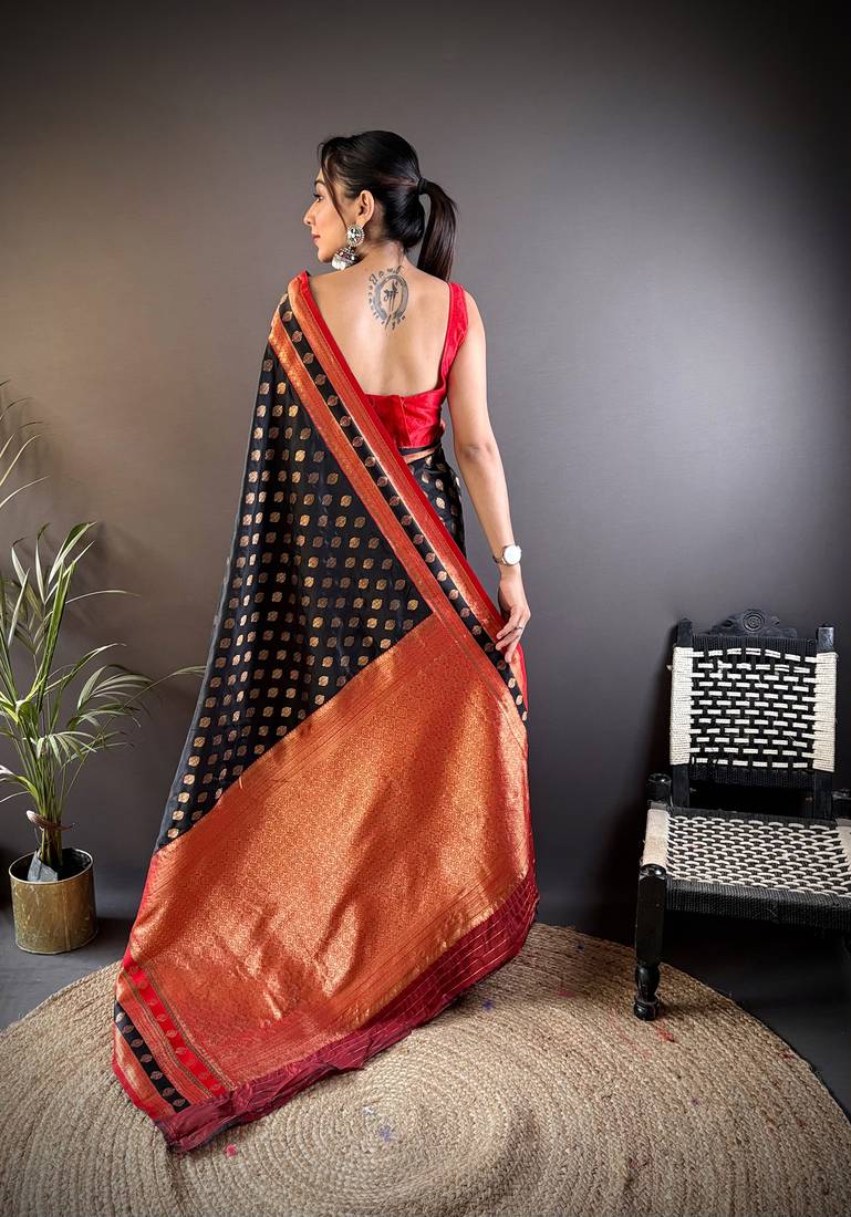 Elora soft silk butti zari weaving work banarasi saree(black)