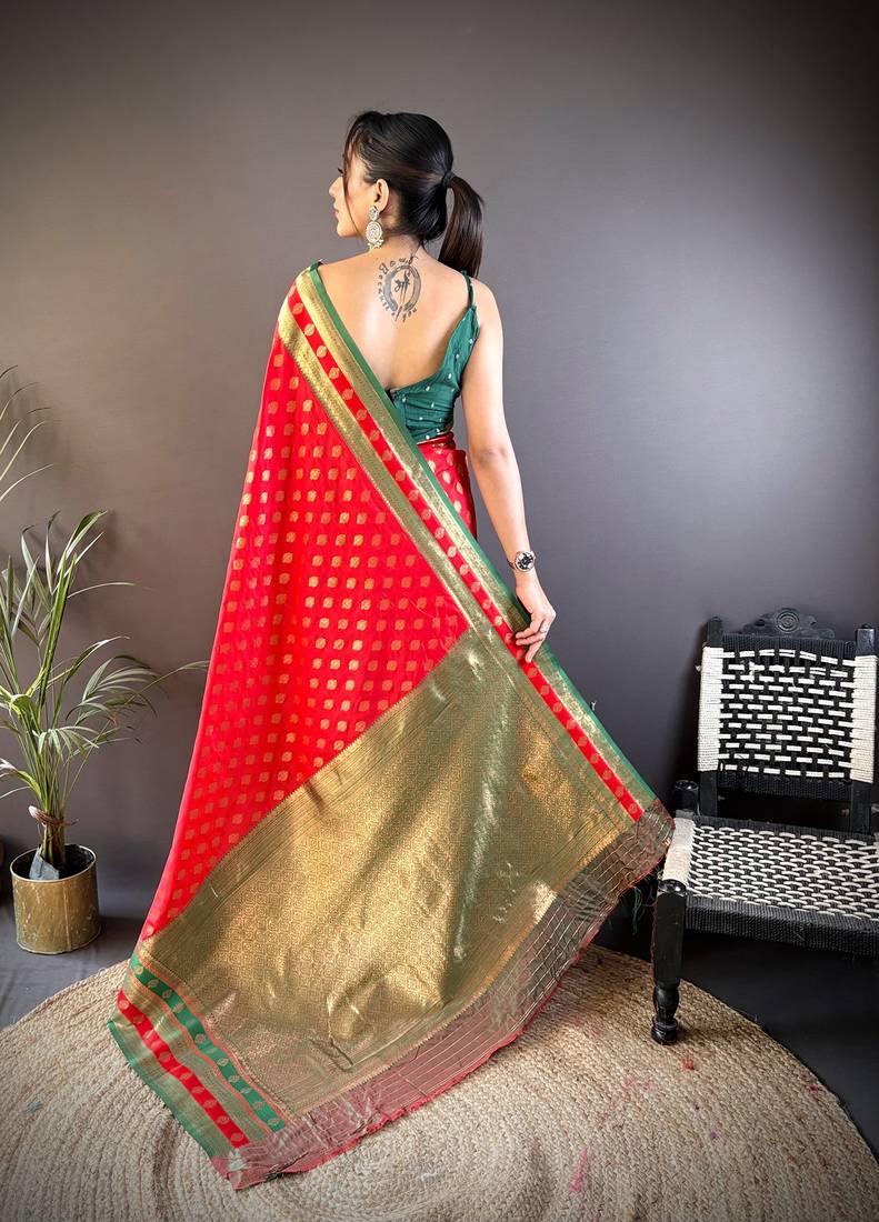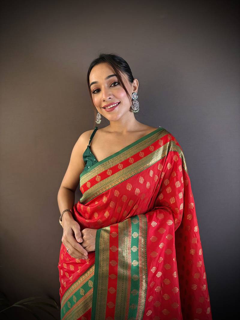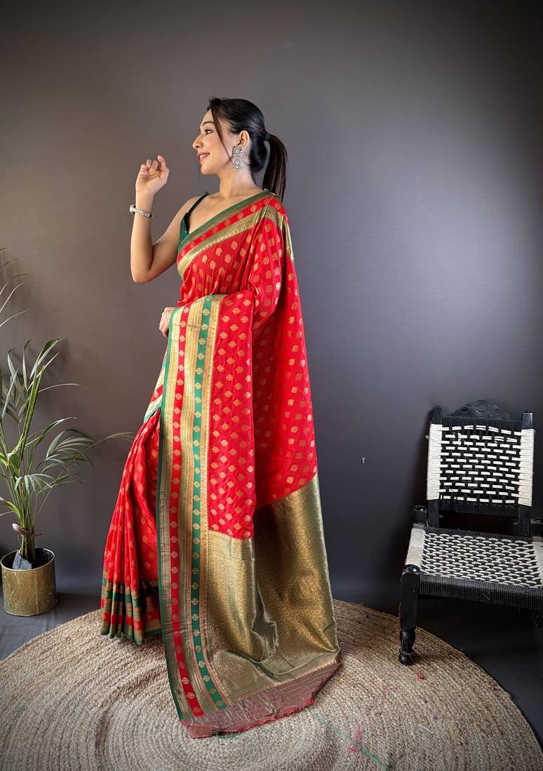Elora soft silk butti zari weaving work banarasi saree(red)