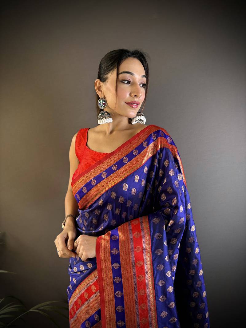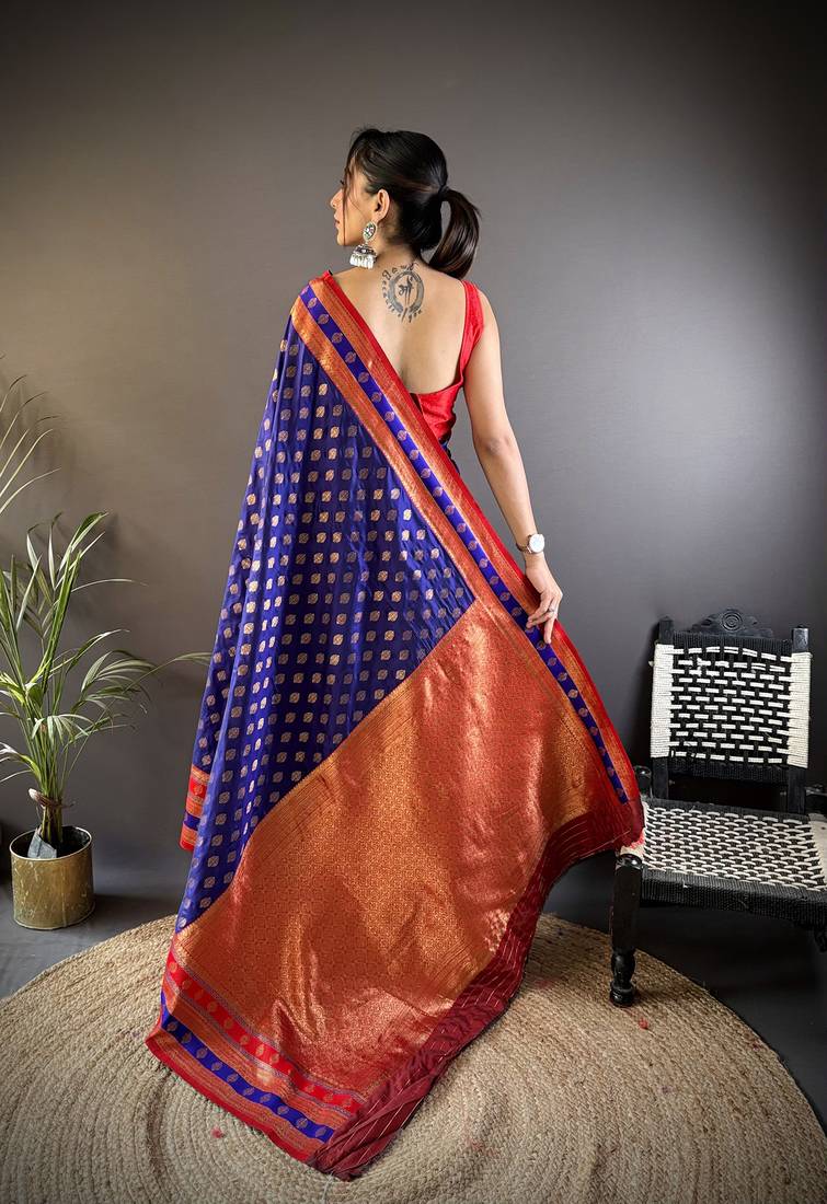 Elora soft silk butti zari weaving work banarasi saree(royal blue)