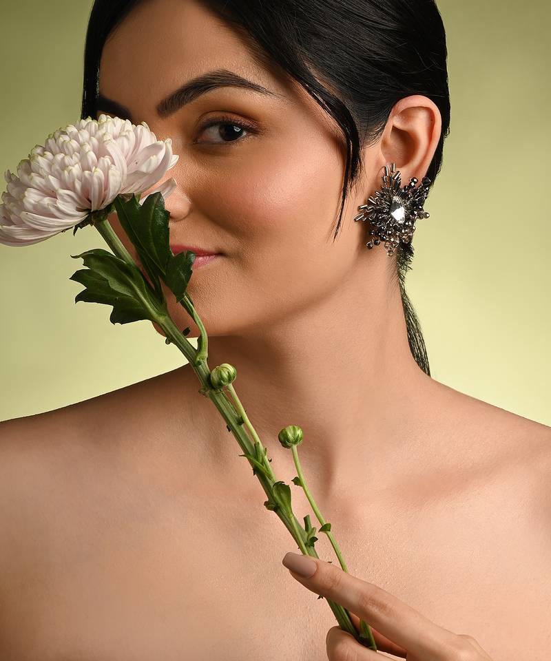 | Product Name | Modern Black And Silver Plated Stone Stud Earrings | |