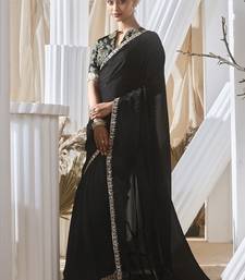 Black tissue silk blend sequince work designer border with digital printed blouse party wear saree