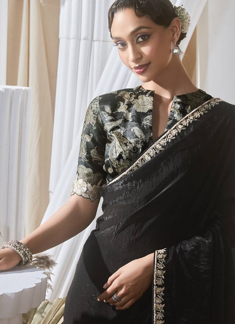 | Product Name | Black Tissue Silk Blend Sequince Work Designer Border With Digital Printed Blouse Party Wear Saree | |