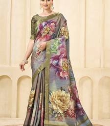 Gray pink signora zari silk blend floral digital printed casual wear saree.