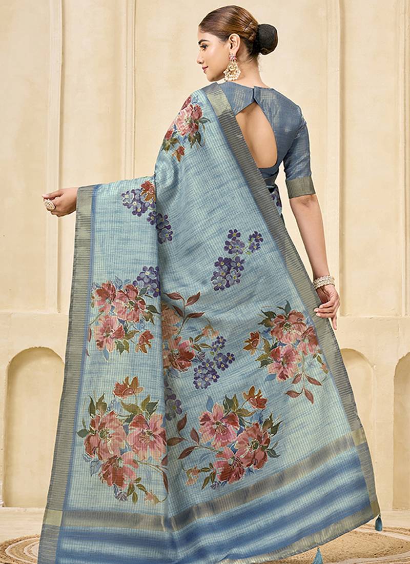 | Product Name | Sky Blue Pink Signora Zari Silk Blend Floral Digital Printed Casual Wear Saree. | |