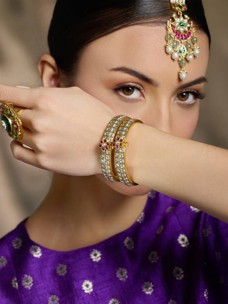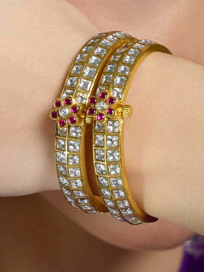 | Product Description | Crafted With White Stones And A Delicate Floral Design, These Gold Toned Bangles Offer A Perfect Blend Of Simplicity And Sparkle For Daily Wear, Festive Looks, Or Party Elegance.