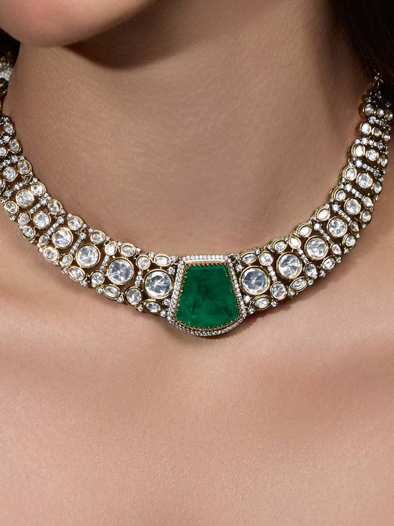 | Product Description | The Noor E Panna Set Features A Regal Necklace And Matching Earrings, Adorned With Emerald Green Stones And Shimmering Crystals.