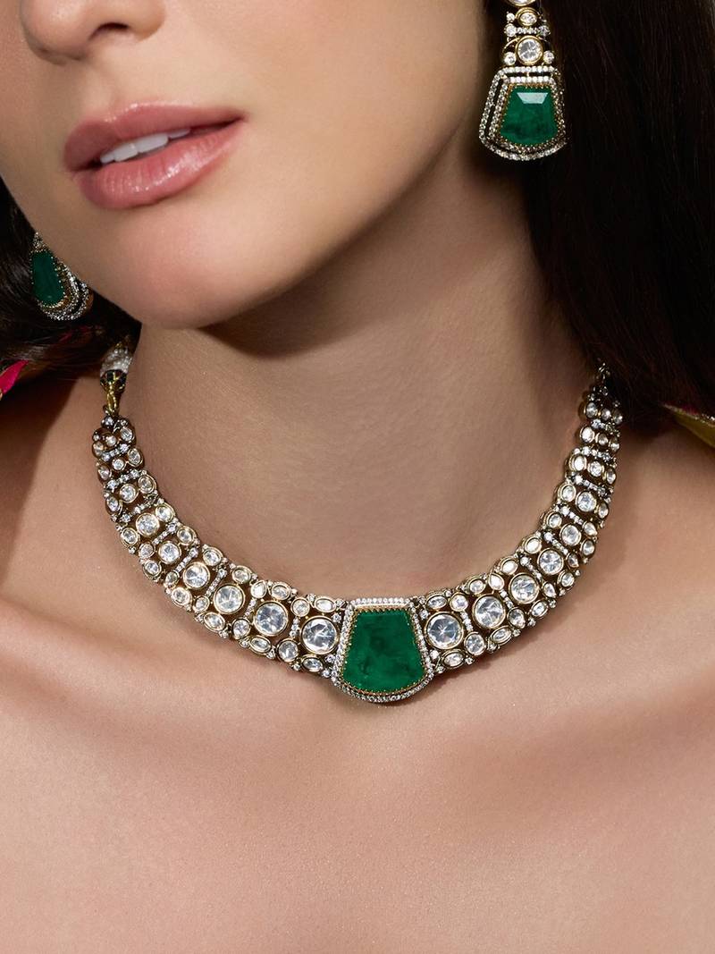 | Product Name | Gold Plated Kundan Green Stone Necklace Set | |