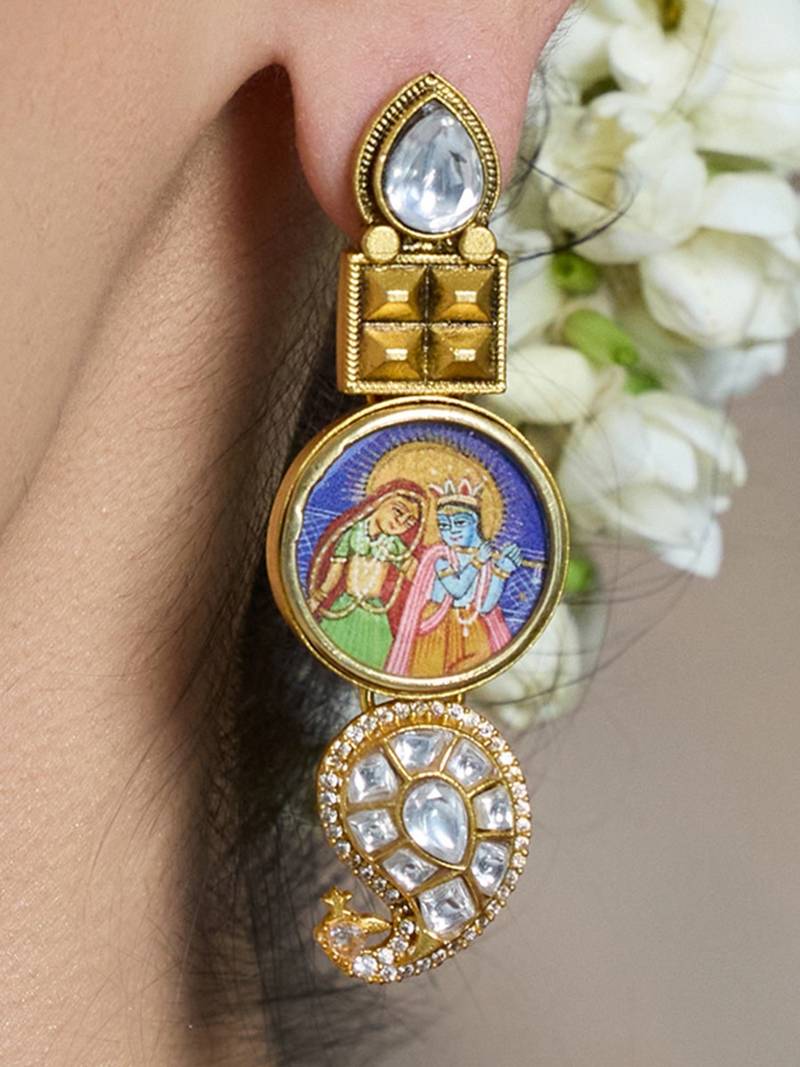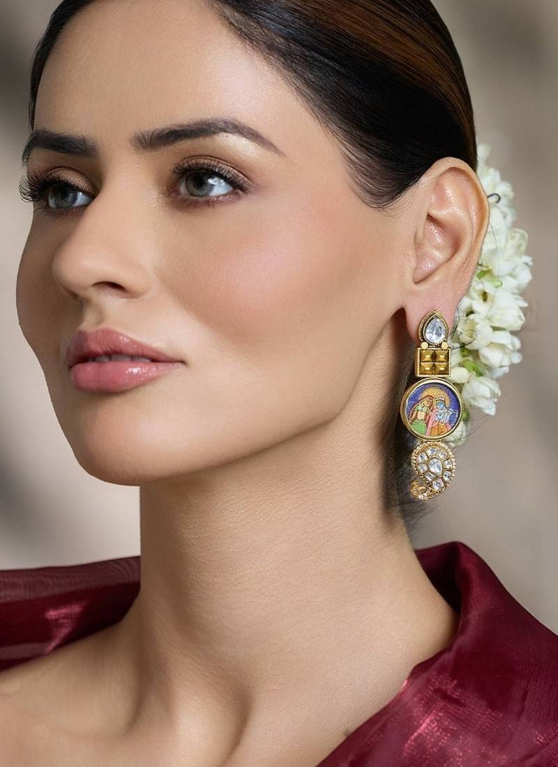 | Product Description | Elevate Your Look With These Fine Handcrafted Earrings Showcasing Traditional Rajasthani Miniature Art, With Dazzling Kundan Stones, And Antique Gold Finish. A Timeless Blend Of Culture And Elegance