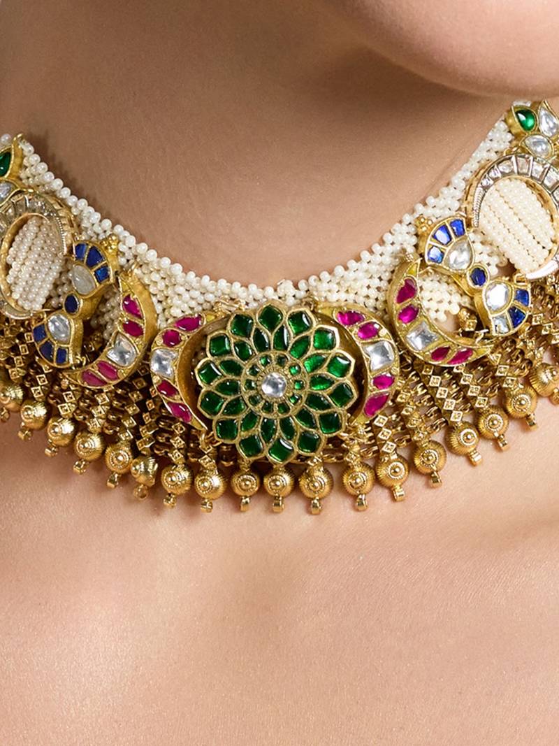 Gold plated kundan multicolor necklace