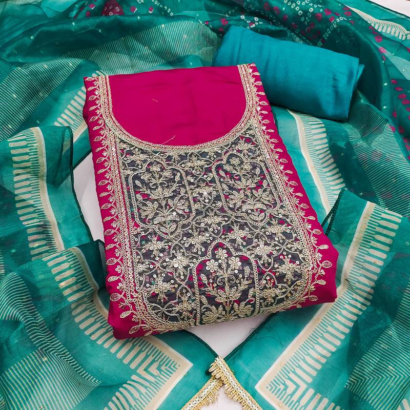 | Product Description | Kimisha Presents Beautifully Designed & Latest In Trends Women's Ethnic Premium Roman Cotton With Embroidered Un Stitched Straight Suit. It Is Available In Free Size And Can Be Stitched To Suit Your Measurements. It Is Alterable Up To Chest Size Of 46, Comes With Shimmer Fancy Dupatta And Plain Rayon Un Stitched Bottom. This Dress Would Add Elegance To Your Look. Wear It At Any Occasion By Pairing It With Matching Ethnic Jewelary Like Ethnic Jumkas And Ethnic Footwear Like Mojaris And Juties To Get Complete Ethnic As Well As Fab Festive Look & Get Complimented For Your Impressive Choice. | |