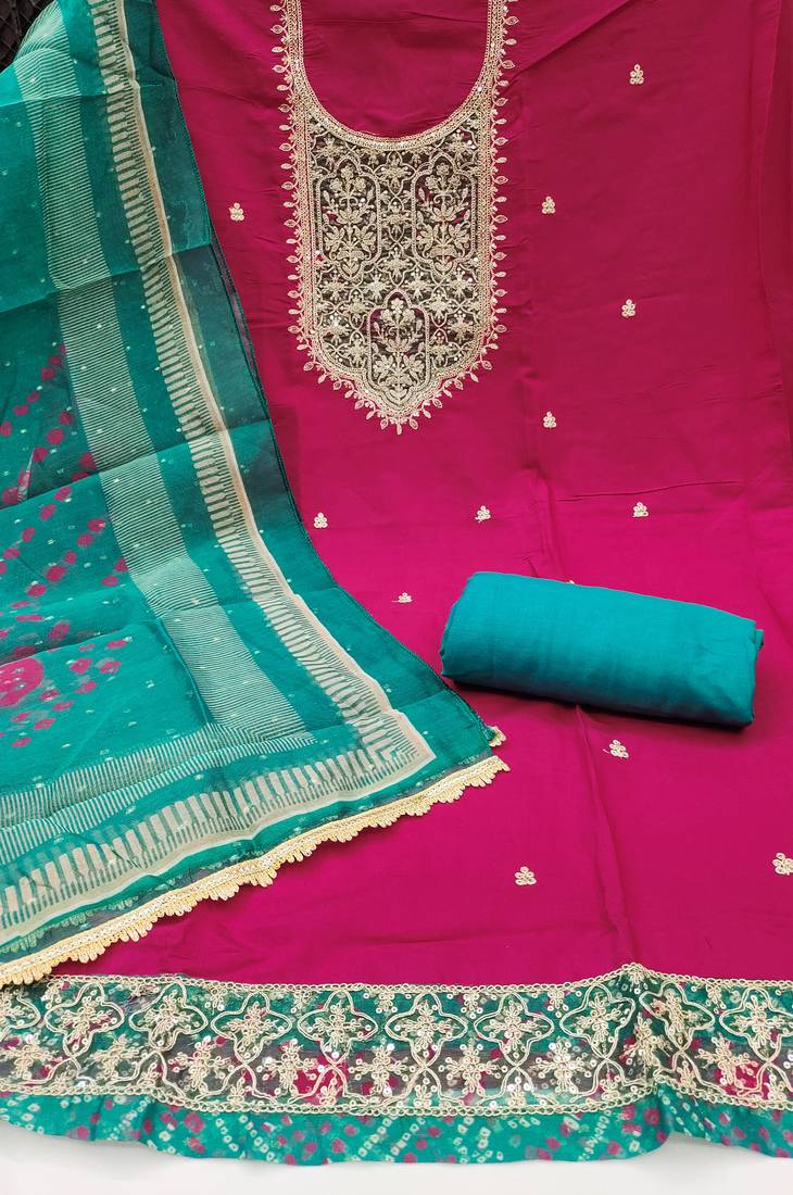| Product Name | Magenta Premium Roman Cotton Embroidered Unstitched Dress Material | |