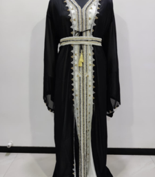 | Product Name | Black & White Moroccan Stitched Kaftan With Handcrafted Golden Beadwork And Belt | |