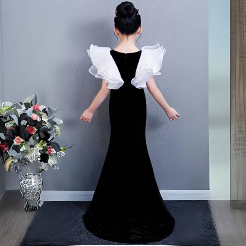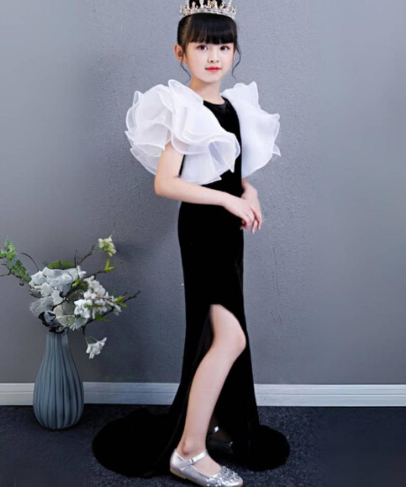 | Product Description | For A Posh Look, Dress Your Baby Girl In This Black Kids Slit Dress Designed In Velvet. This Fashionable Little Girl Slit Dress Is Crafted In A Line Pattern And Comes With Big White Layered Wing Sleeves. A Delightful Baby Girl Birthday Party Dress For Girls Of Age 6 Months To 15 Years To Dress Them In Synch With The Latest Style. Buy Online At Pink Blue India This Glamorous Kids Slit Dress For Best Prices. | |
