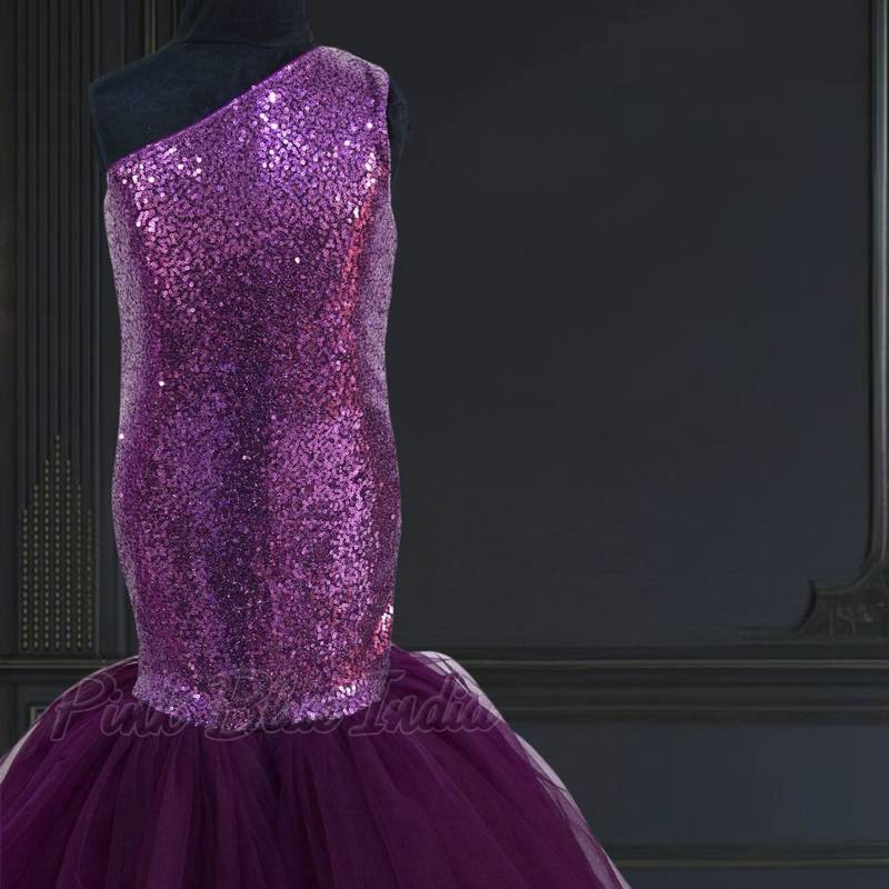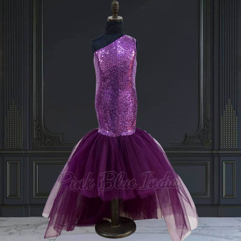 | Product Description | Let There Be Spark And Shine With This Purple Colored Mermaid Gown Designed Using The Best Of The Fabrics. This One Shoulder Sequins Gown For Little Girls Makes A Dreamy Pick For Birthday Parties And Weddings. Go With This Customized Mermaid Party Dress That Your Little One Is Going To Enjoy Wearing. It Even Comes With A Net Flare That Adds More Grace And Glamour To This Exclusive Piece Of Clothing. |