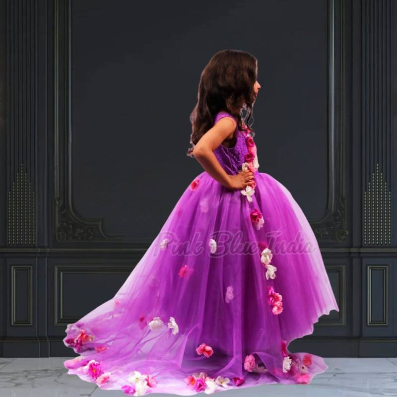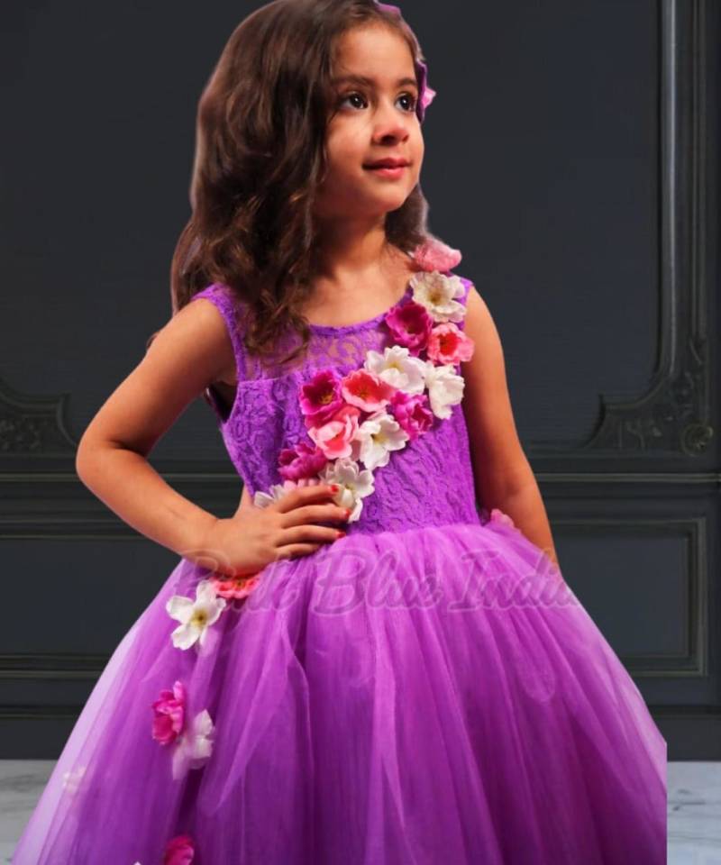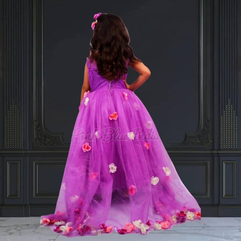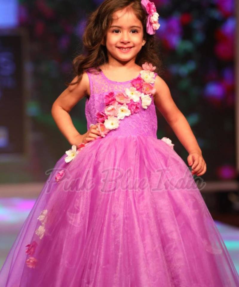 | Product Description | Soothing Lavender Party Wear Gown With Contrasting Net Flare Adorned With Flowers Is The Latest Design To Buy For Girls Between 1 To 12 Years. Sleeveless Bodice With Assorted Flowers Adorned On It. The Long Flare Is The Most Unique Thing On This Wonderful Attire. Made With Lace Net And Tulle Net, This Is A Perfect Dress For Birthdays, Weddings And Various Other Special Occasions To Dress Your Darling Like A Princess. |