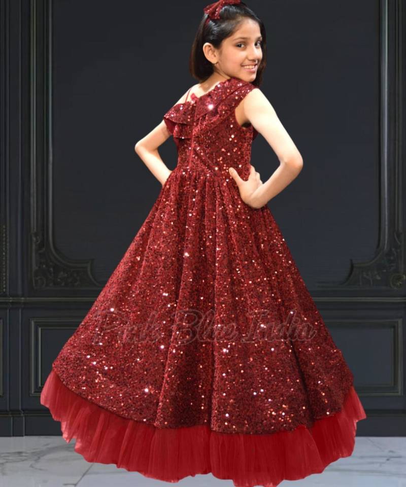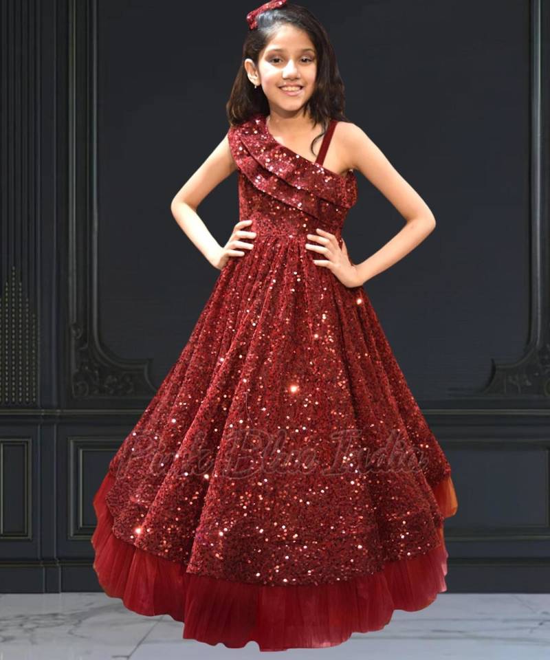 | Product Description | Be It A Wedding Or Birthday Celebration, This Velvet Sequined Gown Makes A Fabulous Choice Of Party Wear Gown For Baby Girls In India. Dressed For Girls Of Age 1 To 12 Years, This Shimmery Gown Comes With Ruffled On The Yoke And Sequins All Over. The Lovely Flare Adds On To The Grace Of This Exceptional Wear. Have Your Little Ones Dressed In This Stylish Kids Gown That Comes With A Matching Hair Clip Or Band For A Complete Party Look. |