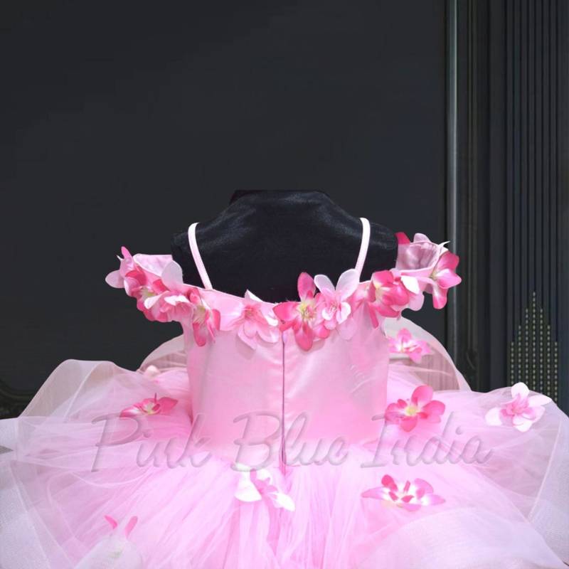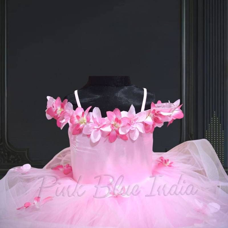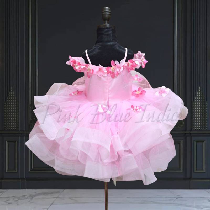 | Product Description | Pink Colored Off Shoulder Gown Is Just What You Need To Have Your Princess Dress Like One. Made Using Net, This Party Wear Gown Comes With Floral Embellishments. Available In Sizes For 6 Months To 10 Years, This Summery Gown Includes A Matching Hair Accessory To Have Her Hair Dressed Perfect. Buy Online At Pink Blue India This Lovely Party Dress For Birthdays And Special Occasions. | |