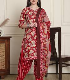 Wine cotton blend printed ready to wear patiala salwar suit stitched