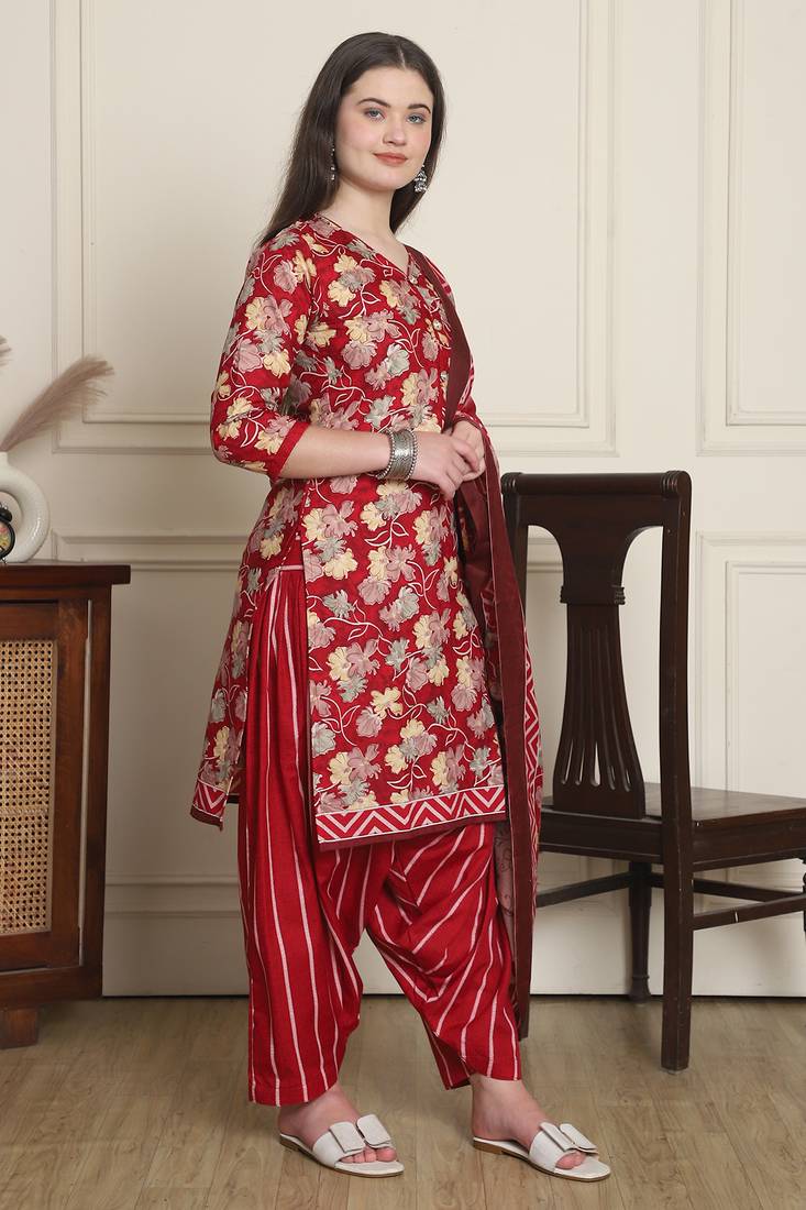 | Product Name | Wine Cotton Blend Printed Ready To Wear Patiala Salwar Suit | |