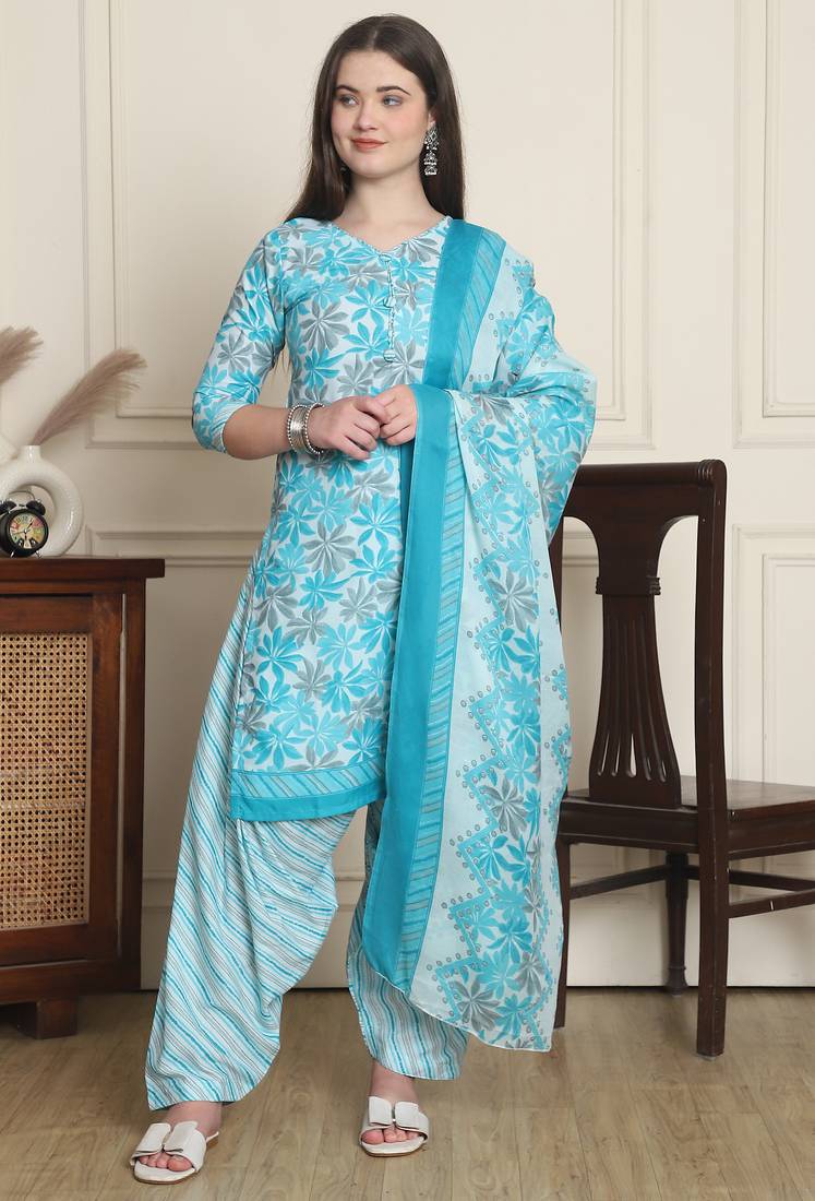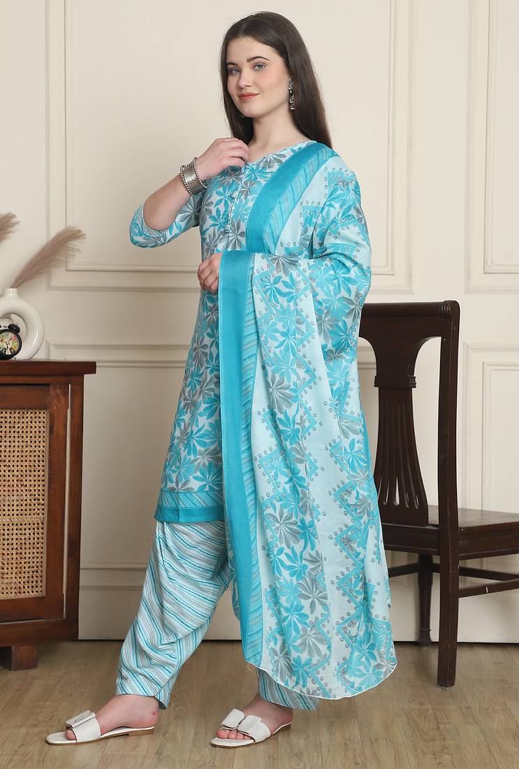 | Product Name | Turquoise Cotton Blend Printed Ready To Wear Patiala Salwar Suit | |