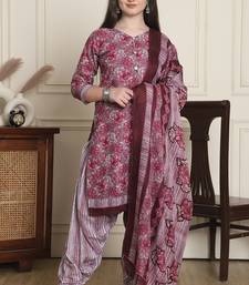 Pink cotton blend printed ready to wear patiala salwar suit stitched