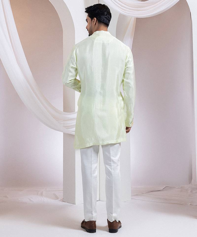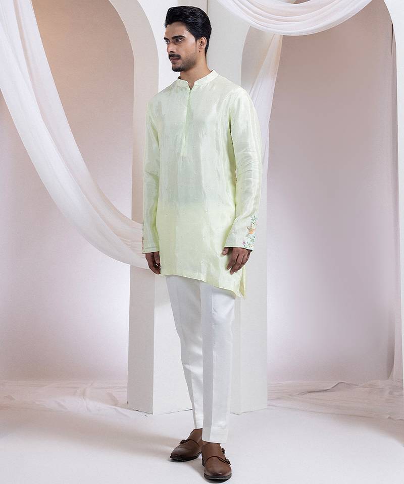Light green embroidered silk kurta set