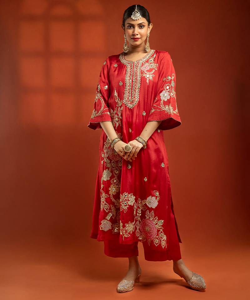Product Name Red Embroidered Cotton Silk Kurta Set