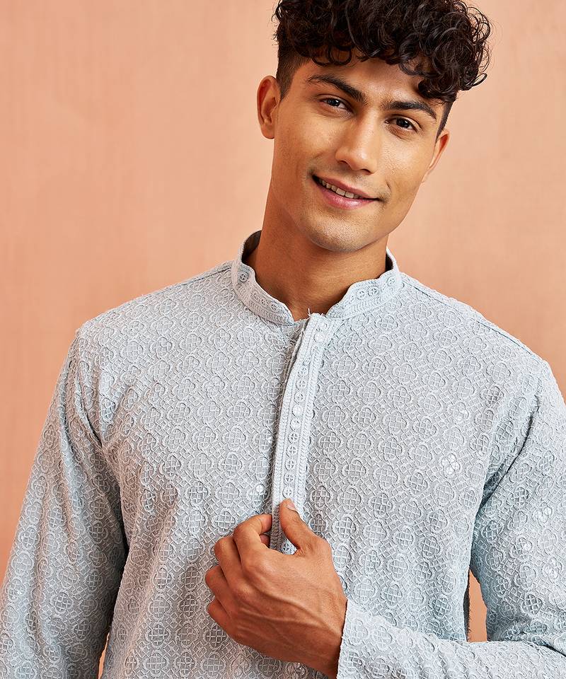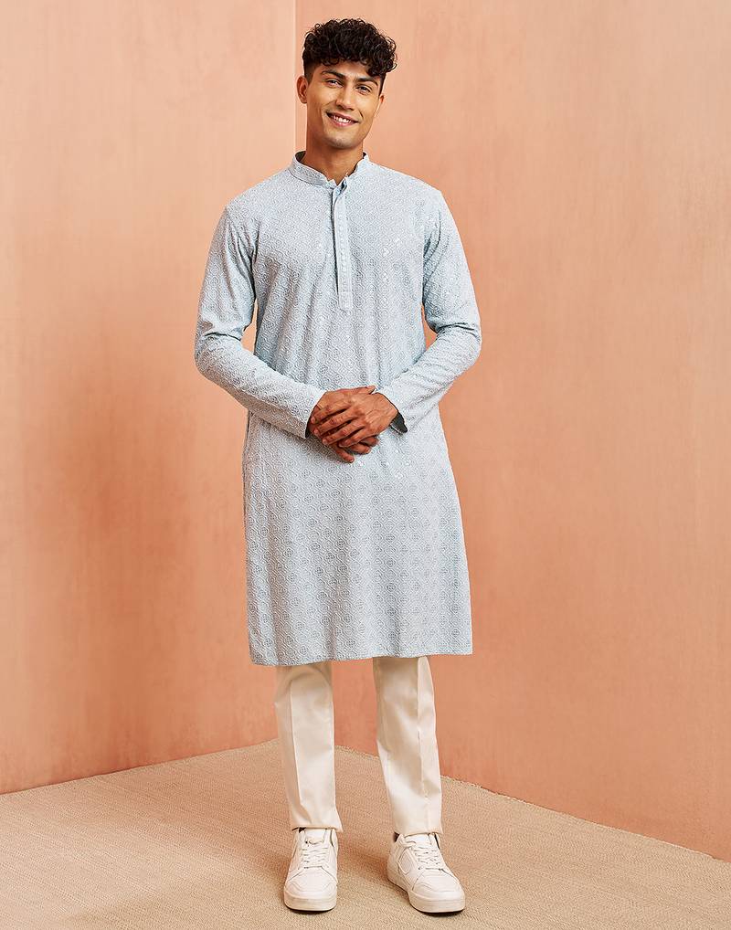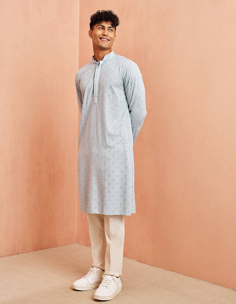 | Product Name | Aqua Chikankari Kurta With Cream Pant Sequin Embroidered Set | |