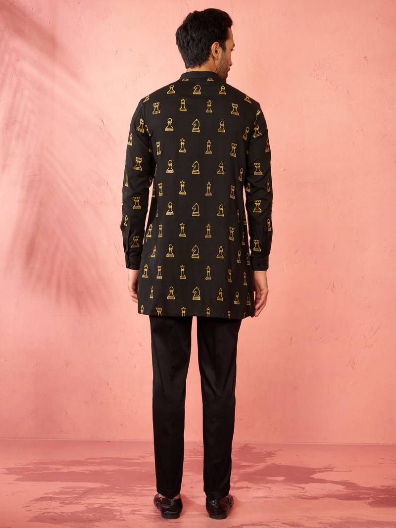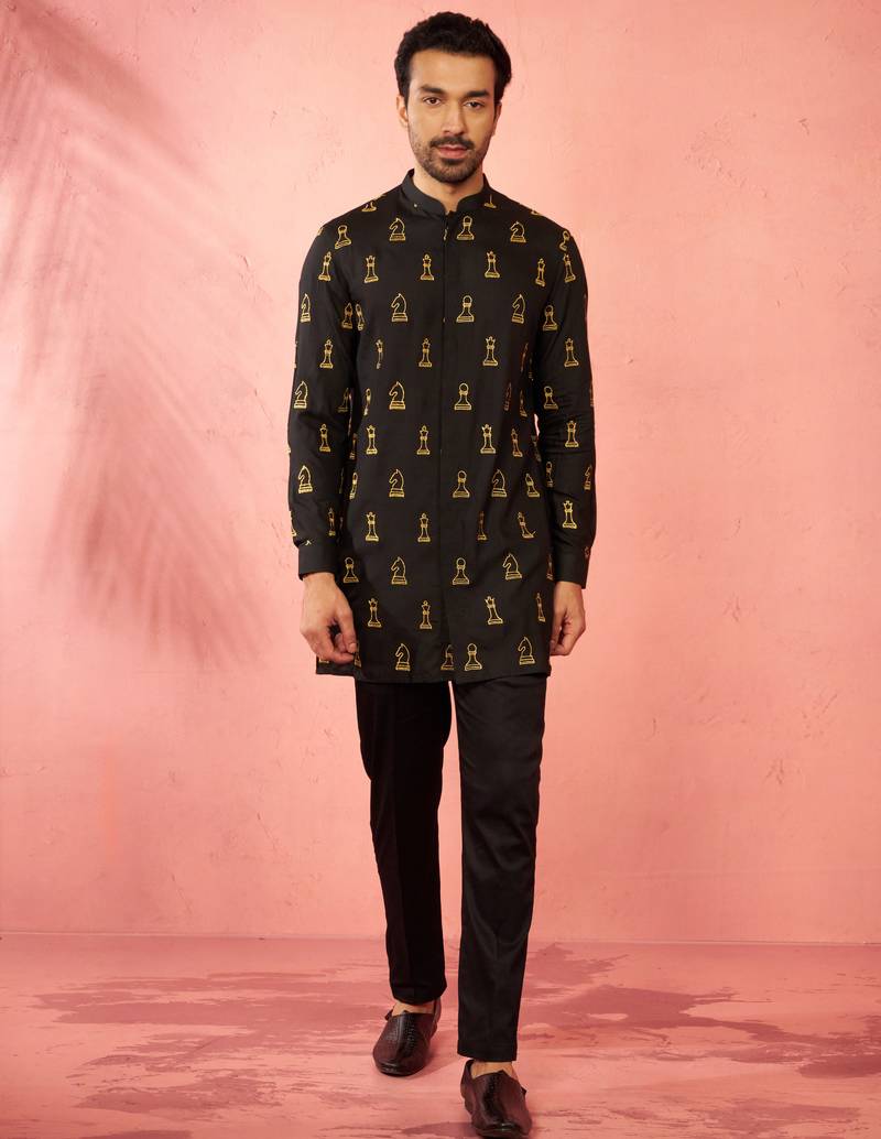 | Product Description | Embrace Modern Ethnic Style With Vastramay's Black Fine Satin Kurta Featuring All Over Thread Embroidery With Quirky Motifs, Paired With Contemporary Cotton Lycra Pant For Perfect Festive Styling. | |