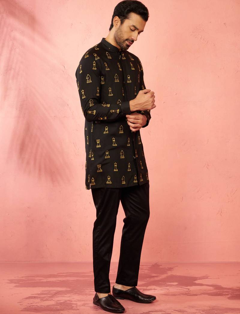 | Product Name | Black Fine Satin Kurta With Cotton Lycra Pant Modern Festive Set | |