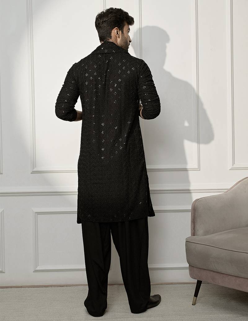 Black kurta patiala set with dupatta – chikankari kurta, patiala bottom, rayon dupatta – perfect for grand celebrations.