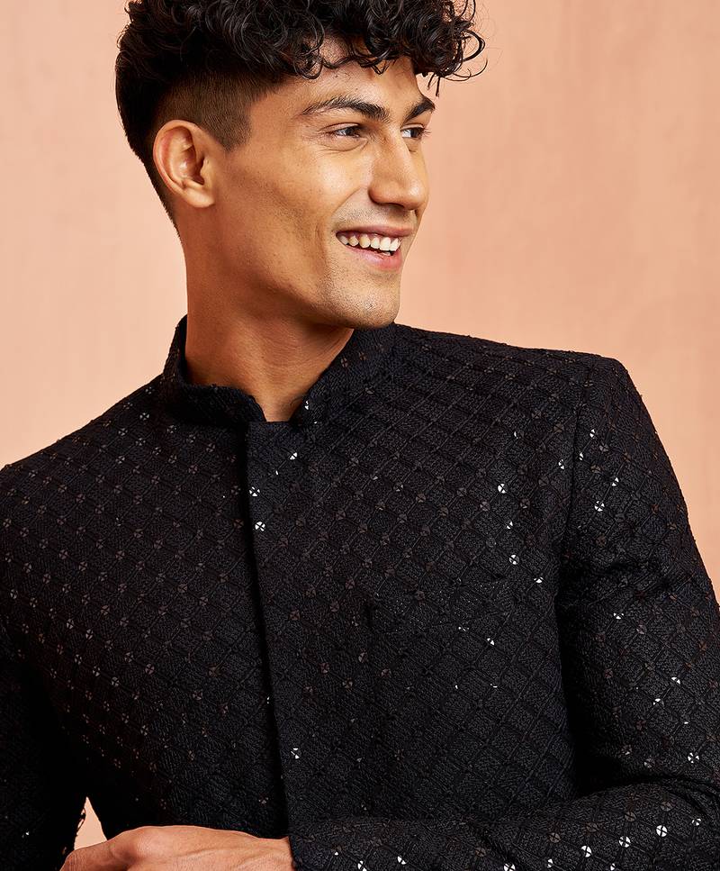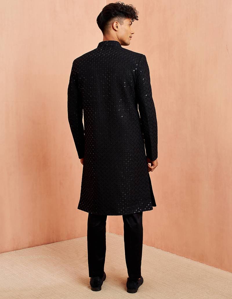 | Product Name | Black Rayon Sherwani Set Hexagon Sequin Embroidery Traditional Festive, Wedding Wear | |