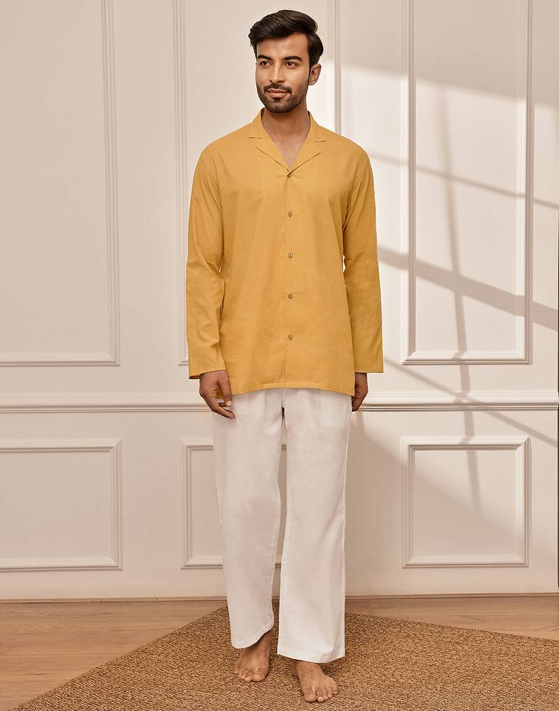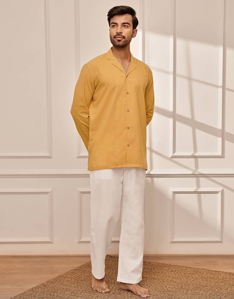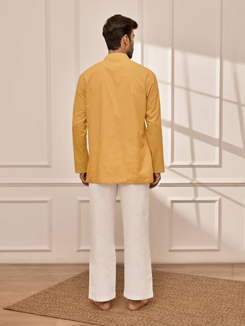 | Product Description | Add Vibrant Energy To Your Wardrobe With Vastramay's Thoughtfully Designed Mustard Short Kurta And White Palazzo Set. The Kurta Features A Stylish Notch Collar And Front Button Closure In Premium Cambric Cotton. Complemented By Comfortable White Flex Cotton Palazzo Pants With Full Elasticated Waist And Practical Side Pockets, This Set Offers Perfect Harmony Of Structure And Comfort. Ideal For Yoga Practice, Casual Gatherings, Festive Occasions, Or Summer Comfort, This Ensemble Brings A Sunny Disposition To The Modern Man's Mindful Wardrobe. | |