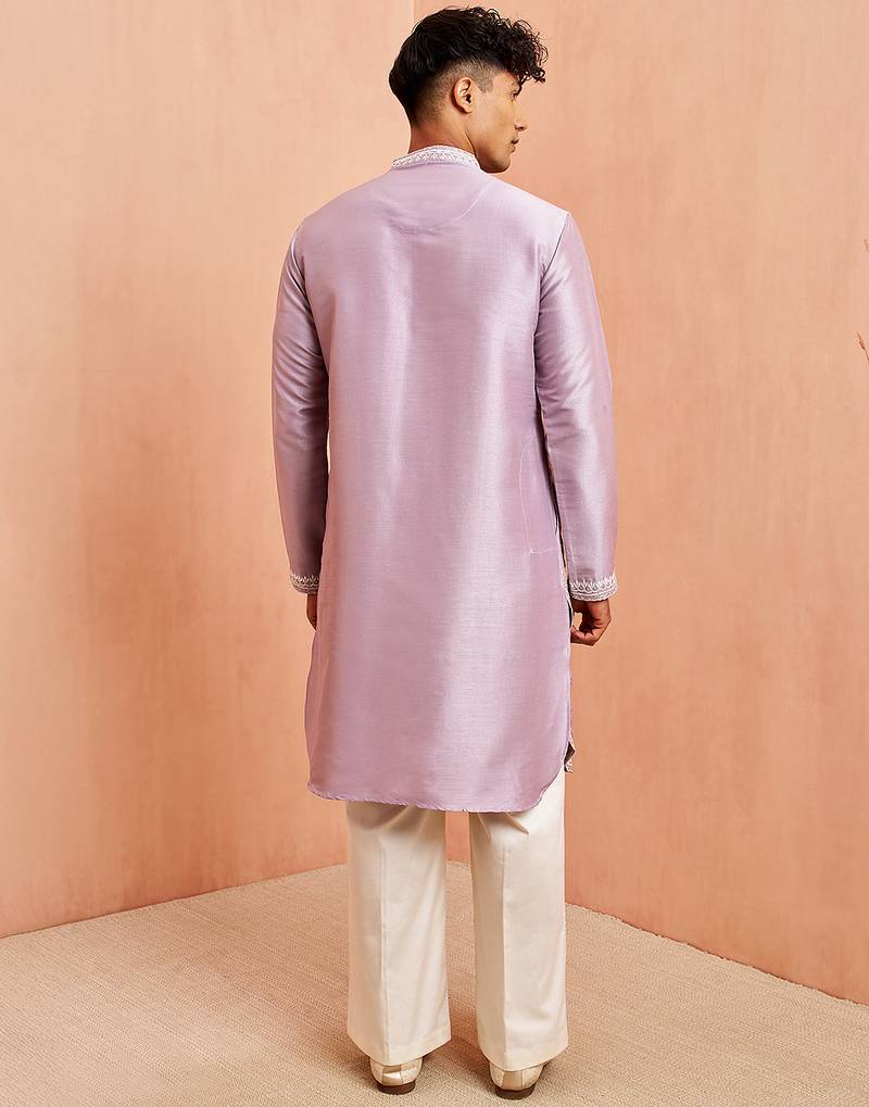 | Product Name | Purple Silk Kurta Pyjama Set Hand Embroidery Ethnic Motif Traditional Festival Wear | |