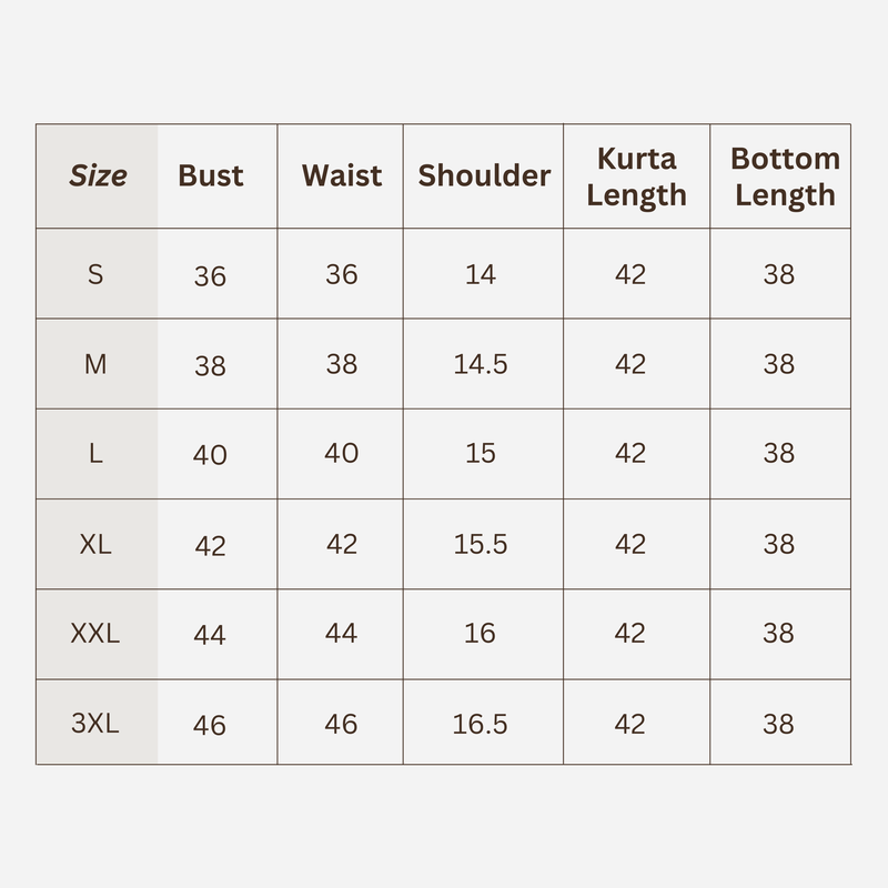 | Package Details | 1 Kurta / 1 Trouser / 1 Dupatta | |