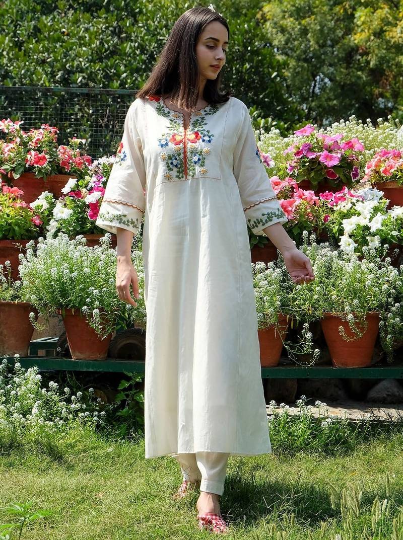 | Product Name | Aaysa Floral Embroidered White Round Neck Silk Anarkali Kurta With Trouser | |
