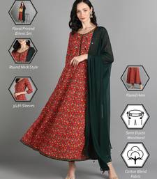 | Product Name | Red Floral Printed With Embroidery Work Cotton Anarkali Kurta Set | |
