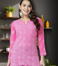Hand embroidered dark pink georgette lucknowi chikankari indian women short kurti