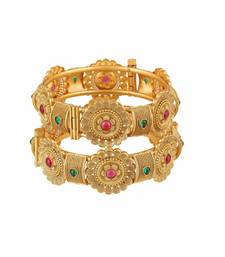 | Product Name | Women Gold Plated Pink And Green Stone Studded Bangles | |