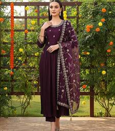 Magenta embroidered silk blend styles women's kurta trousers with dupatta