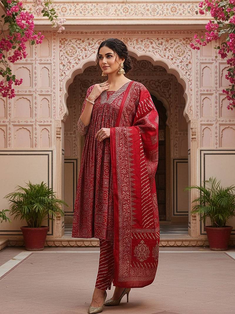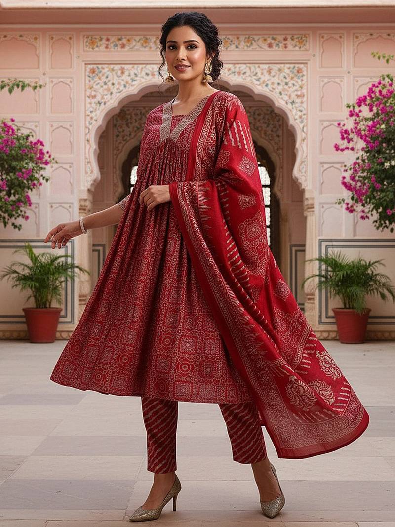 | Product Name | Maroon Color Printed Polyester Styles Kurta Trouser With Dupatta | |