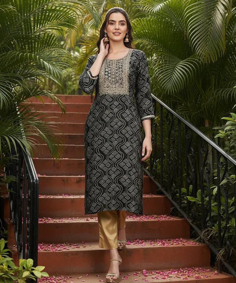 | Product Name | Women Black Viscose Rayon Bandhani Embroidered Straight Kurta | |