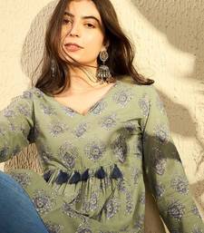 | Product Name | Green Cotton Blend Ethnic Motifs Printed Peplum Tunic | |