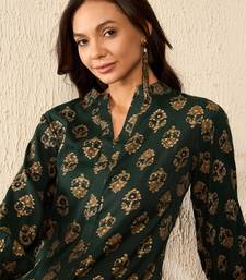 | Product Description | Add A Touch Of Elegance To Your Everyday Style With This Green Cotton Poly Printed Floral Kurti. Crafted From A Comfortable Cotton Polyester Blend, This Kurti Offers A Smooth Finish, Lightweight Feel, And Effortless Charm. The Rich Green Base Is Adorned With Intricate Floral Motifs In Golden Tones, Creating A Subtle Yet Stunning Traditional Look. Featuring A Collar, Button Placket, And 3/4th Sleeves, This Kurti Strikes The Perfect Balance Between Modern Tailoring And Ethnic Grace. Ideal For Workwear, Festive Gatherings, Or Casual Outings, It Pairs Well With Both Trousers And Leggings. |